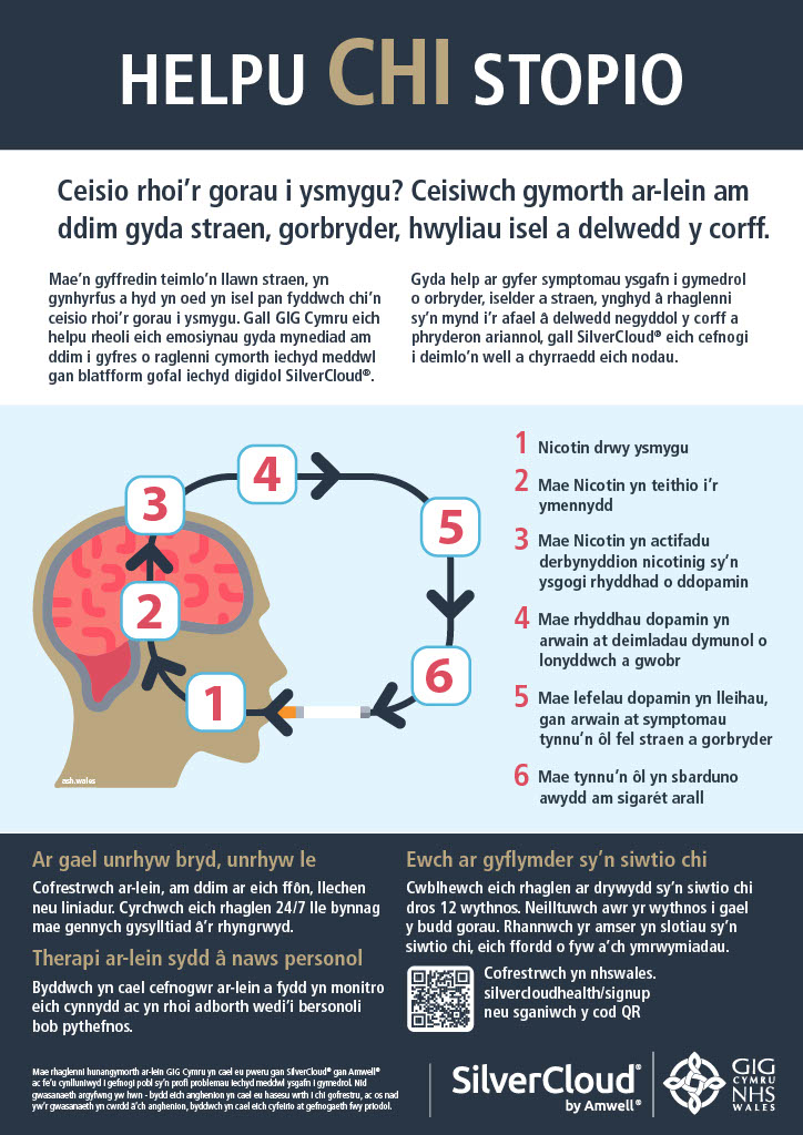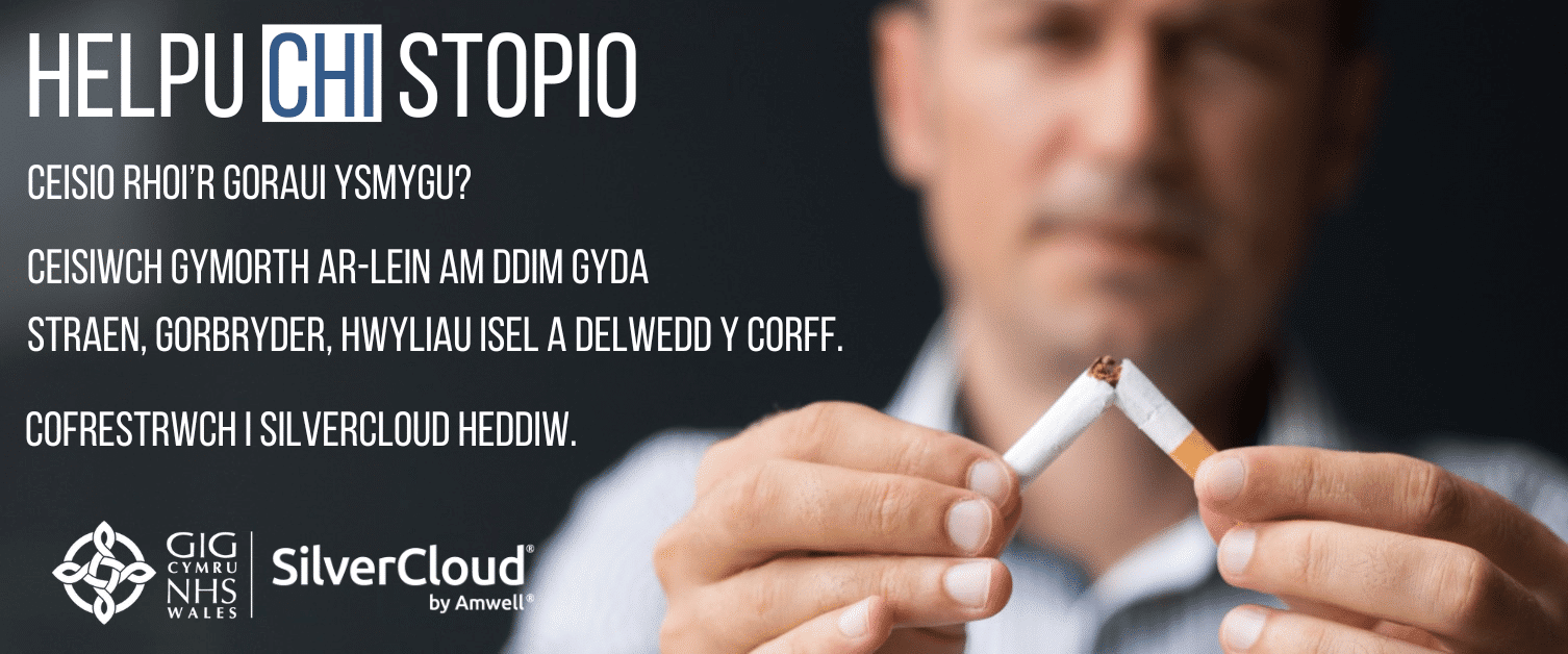ceisio rhoi’r gorau i ysmygu. Gall GIG Cymru eich helpu rheoli eich emosiynau gyda