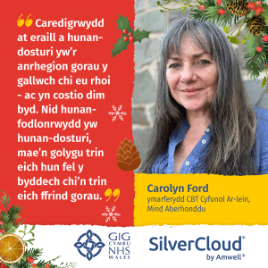 Dywedodd Fionnuala Clayton, Arweinydd Prosiect ar gyfer y Gwasanaeth Therapi Gwybyddol Ymddygiadol Ar-lein, a reolir gan Fwrdd Iechyd Addysgu Powys: “Gall tymor yr ŵyl ddod â phwysau unigryw, ac mae’n hawdd anghofio gofalu amdanom ni ein hunain. Mae’r awgrymiadau hyn wedi’u cynllunio i helpu pobl oedi, myfyrio, a diogelu eu lles meddyliol.