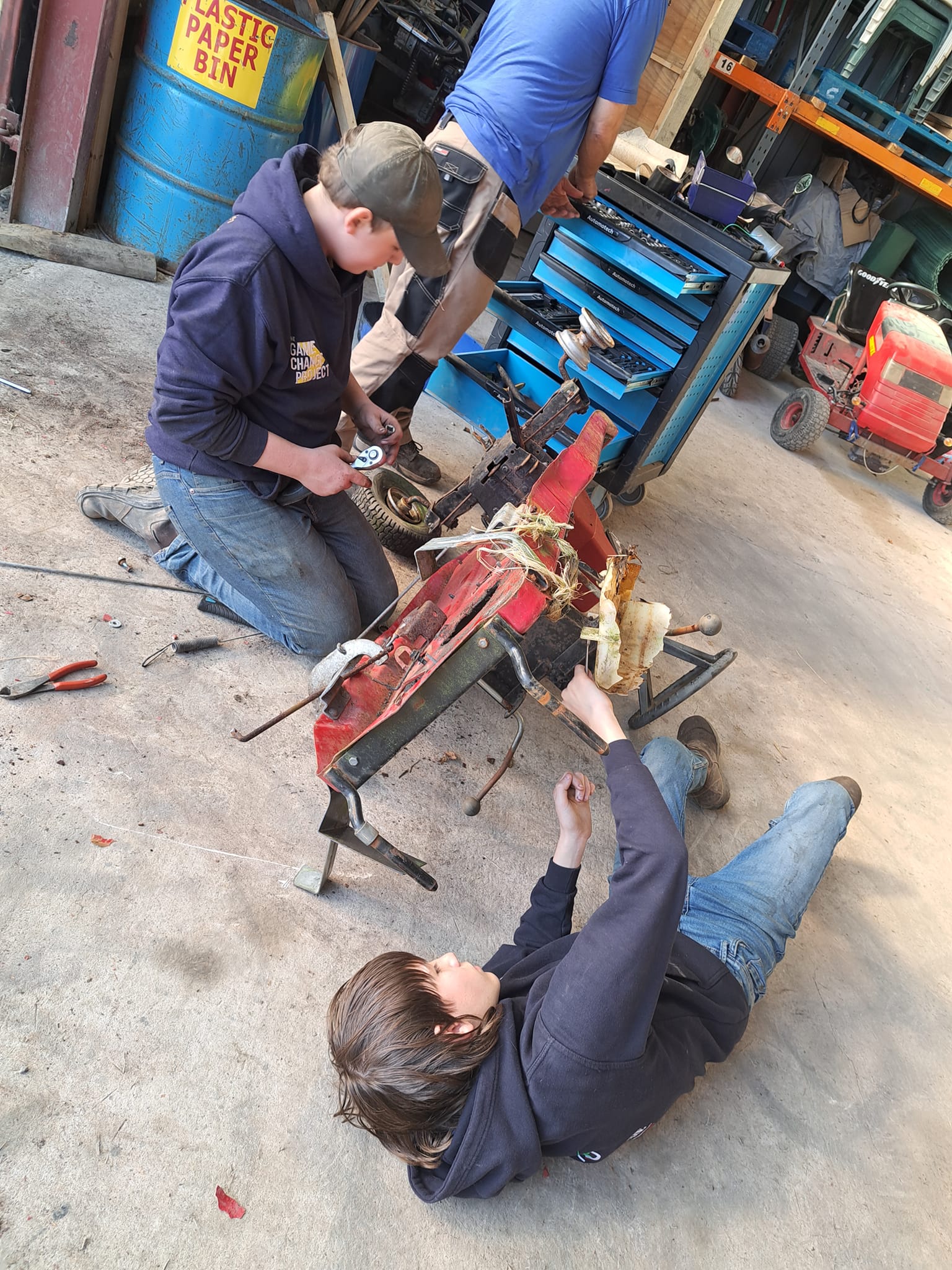 Our visit began in the Mechanics area, where a large covered workshop houses agricultural machinery of all shapes and sizes. Inside, a group of lads were completely absorbed in learning how to remove and refit a set of brakes. Under the guidance of Andrew, and with support from John, a long-standing volunteer, the group worked together, talked through problems, and shared a few laughs along the way.