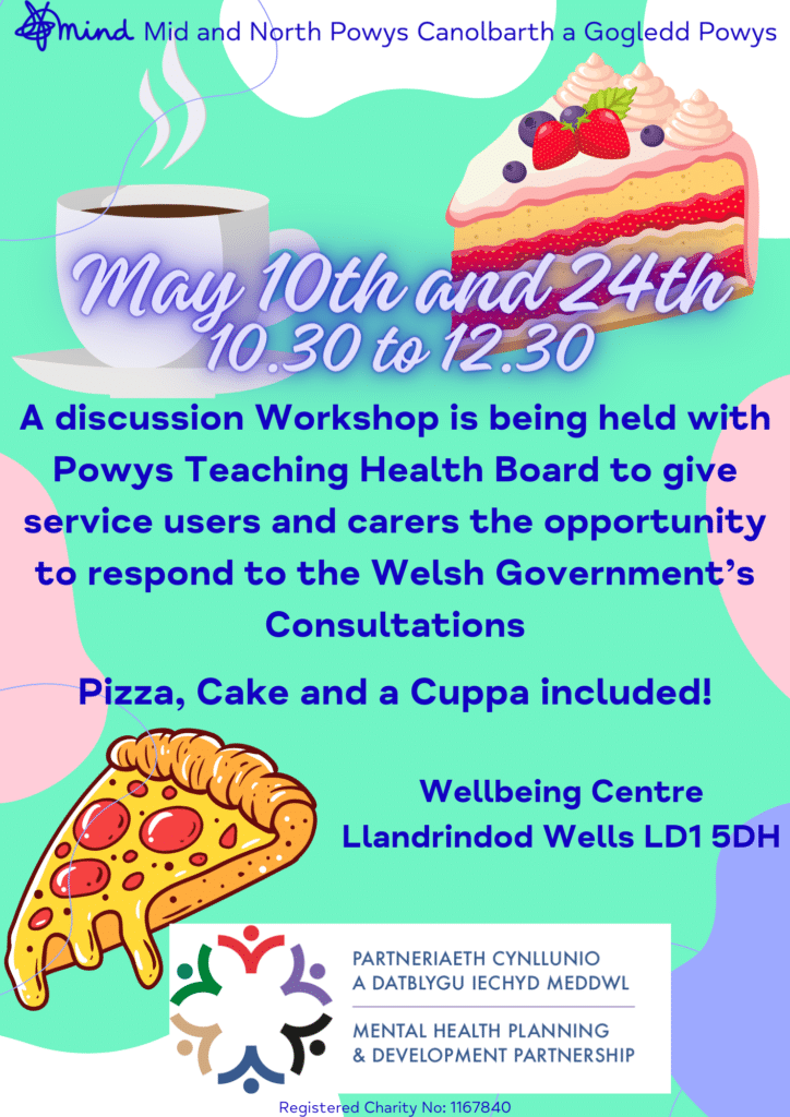 A discussion workshop is being held with Powys Teaching Health Board to give service users and carers the opportunity to respond to the Welsh Government’s consultation on the mental health strategy and services.