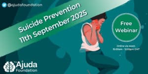 You are invited to join the Ajuda Foundation monthly free webinar, Thursday 11th September for our World Suicide Prevention Day webinar, on Zoom from 10am – 12pm to learn more about ways you can support those feeling suicidal and save a life.