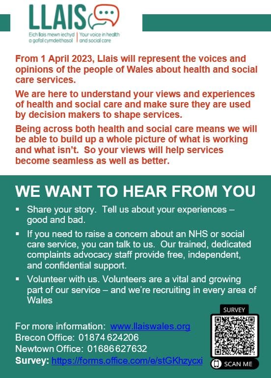 The Powys Older Peoples Forum are in the process of a recruitment drive to gain older people representatives from all over Powys to gain the views on Health and wellbeing services offered in Powys aimed and used primarily by people aged 60+