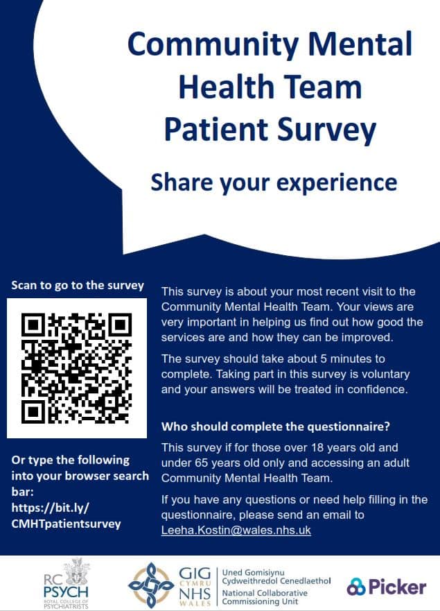 If you would like to discuss this survey or ask any questions about it please contact the Patient Experience & Community Involvement team on 0300 123 9207 or email PECI.team@wales.nhs.uk