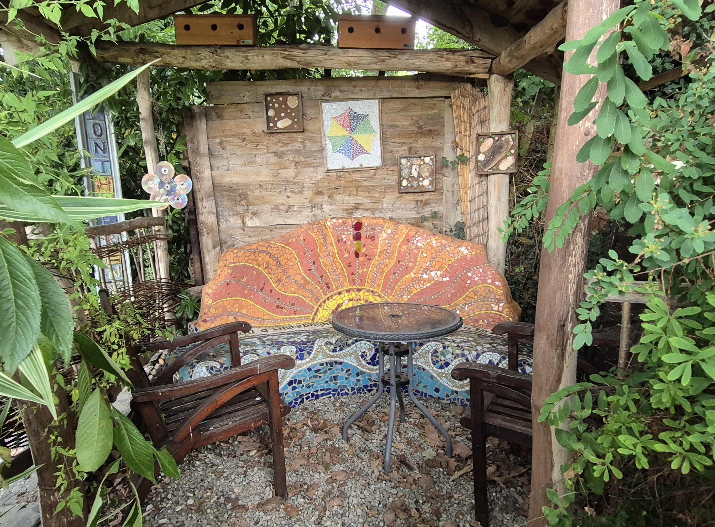 The kitchen, signed off as a fully working space, hosts events like “Baked Potatoes and Bingo” evenings. The gardens, terraced and lush, stretch right down to the riverside. A vegetable patch produces food that’s left outside the building with a donation jar—fresh produce grown and shared with the community.